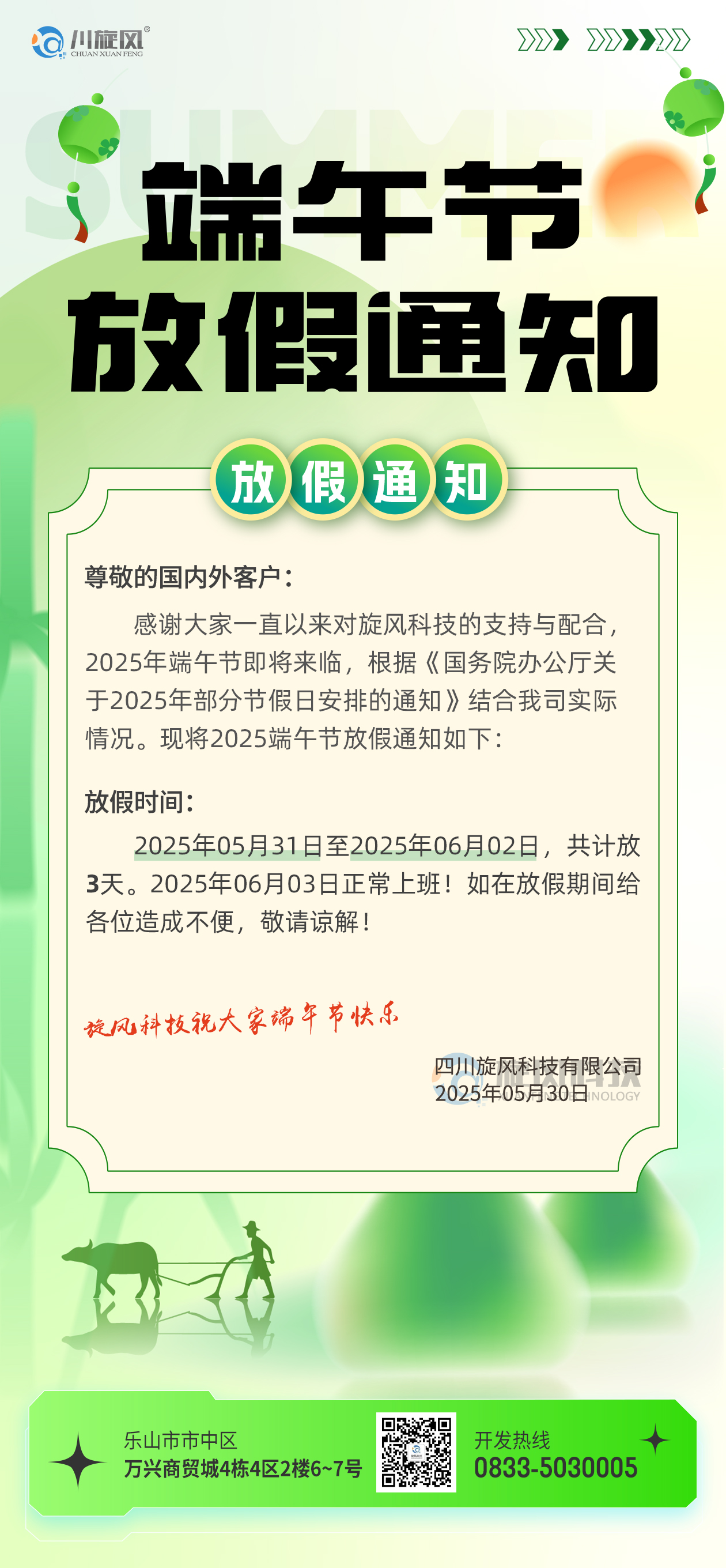 依據(jù)國務(wù)院辦公廳《關(guān)于2025年部分節(jié)假日安排的通知》,端午節(jié)放假安排如下: